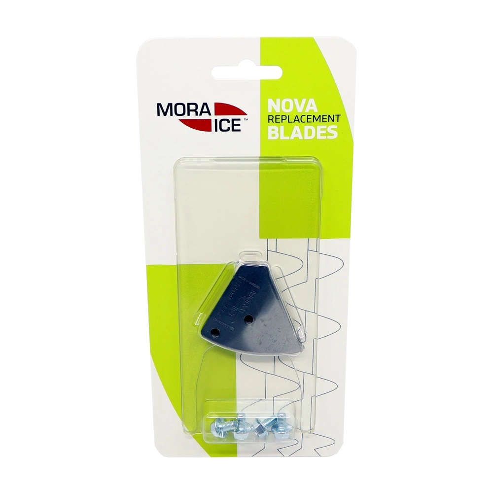 Laget av svensk, rustfritt spesialstÄl. Kuvede kniver gÄr lett i myk is. I hard is fungerer alle typer kniver. Mora Nova reservekniv er kuvede. 110mm bor-diameter