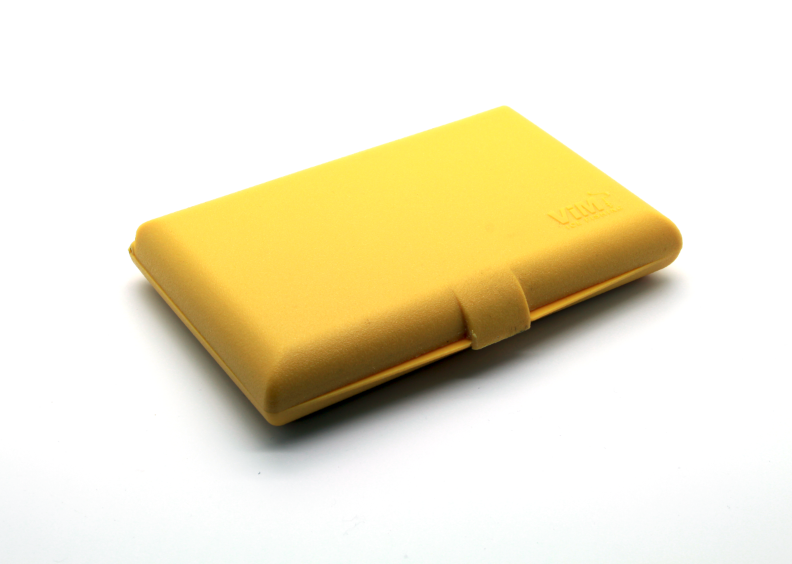Spesialdesignet ask i gul hardplast som holder dine ferdigknytte tafser forvart pÄ en smart mÄte!